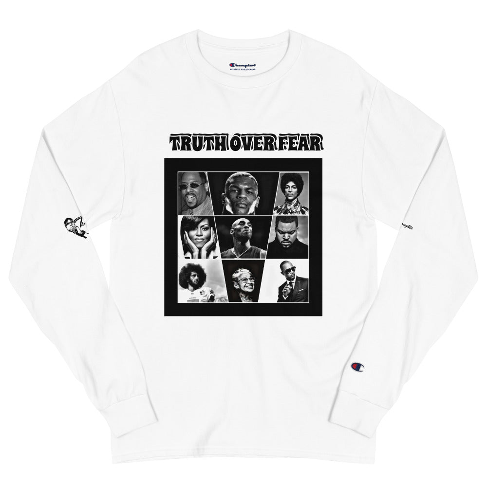 Update your wardrobe with this staple truth over fear men's Champion long sleeve shirt. The soft cotton fabric and relaxed fit allow to wear the shirt on its own, or layer it with your favorite jacket. Plus, it has the added bonus of a Champion “C” logo on the left sleeve.
